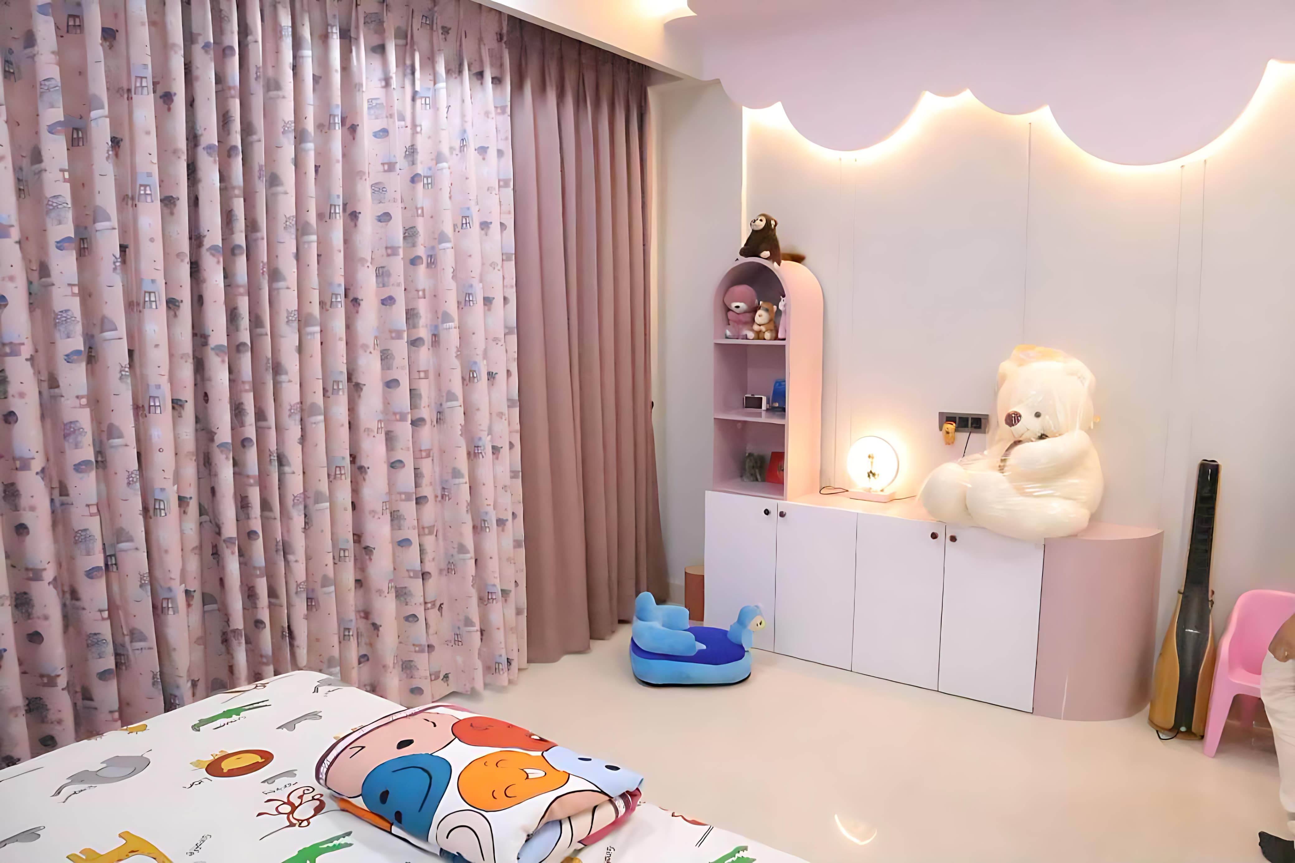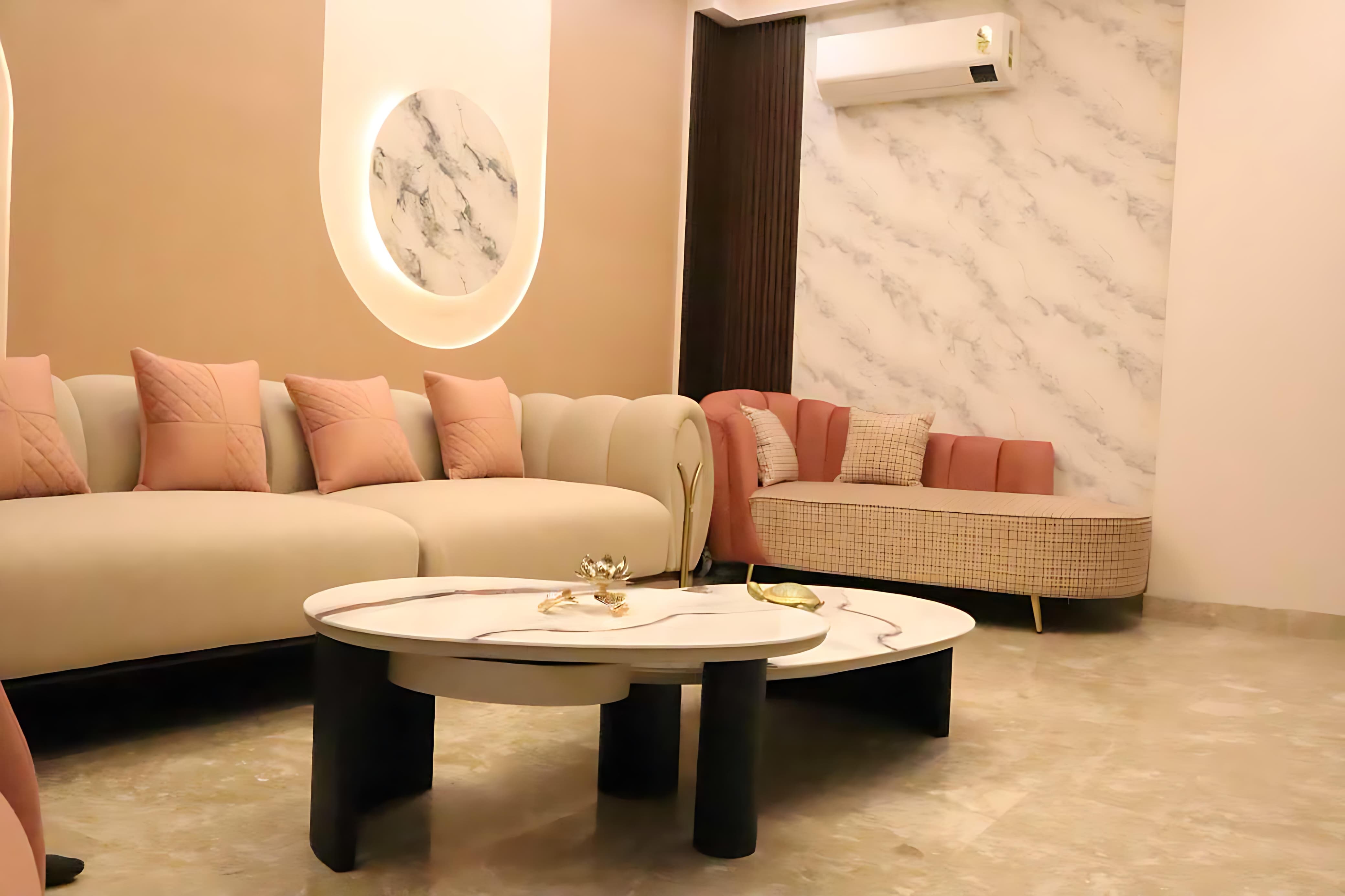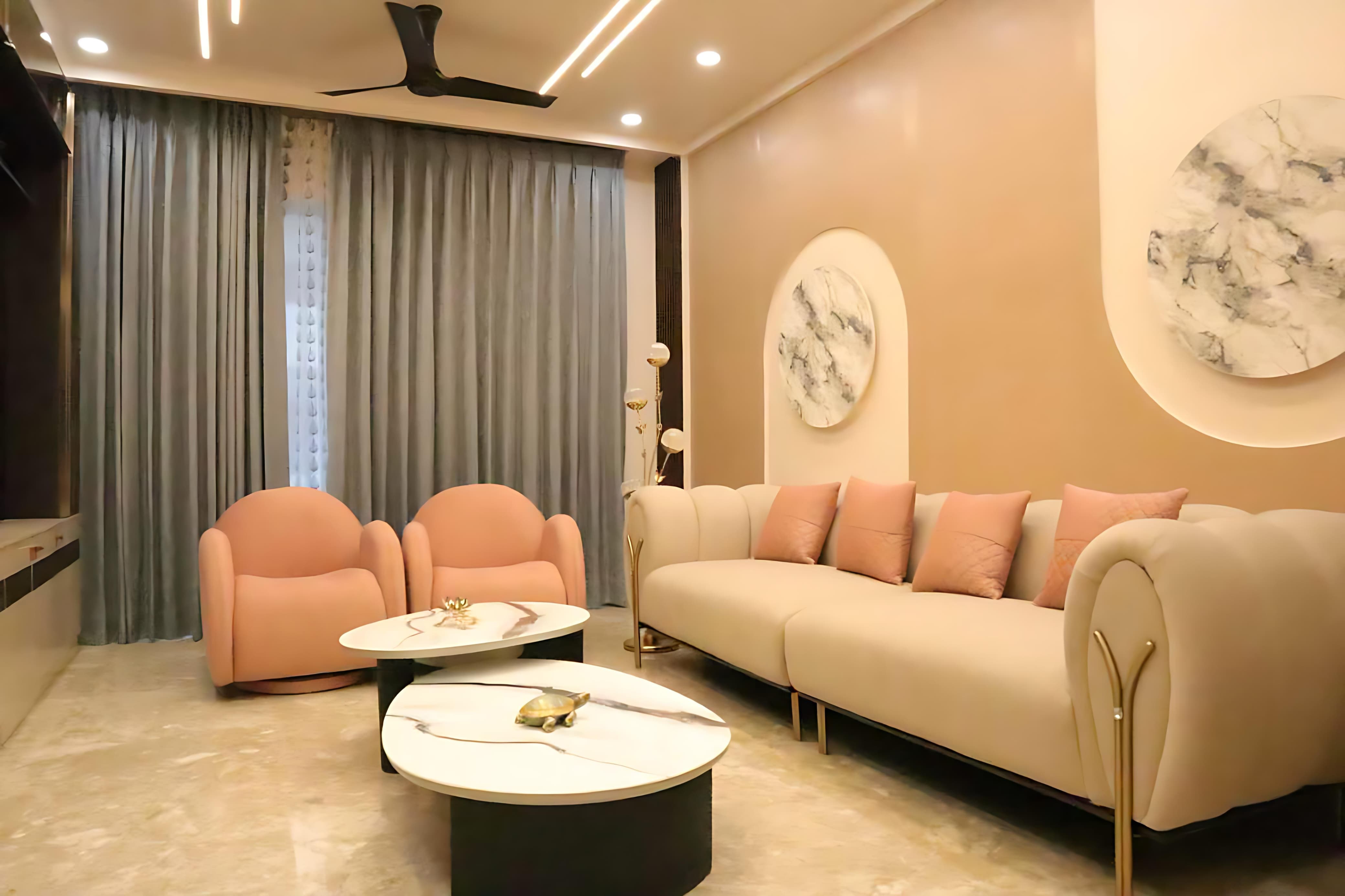 Recently, we transformed a modern apartment in Gurugram into a warm and inviting living room that balances style and comfort. Our client wanted a space that felt both functional and aesthetically pleasing, so we chose a soothing color palette of soft greys and warm neutrals, accented with vibrant artwork and accessories. We customized the furniture to fit the space perfectly, including a plush sofa and a sleek coffee table. To maximize natural light, we opted for sheer curtains, complemented by a statement chandelier that adds a touch of luxury. The result was a beautifully cohesive space that exceeded our client’s expectations—an elegant, comfortable living room where family and friends can gather and enjoy.